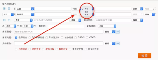 你也可以對檢索主題作出限定:諸如檢索主題A和B;檢索主題A或B;檢索主題A,不含B。