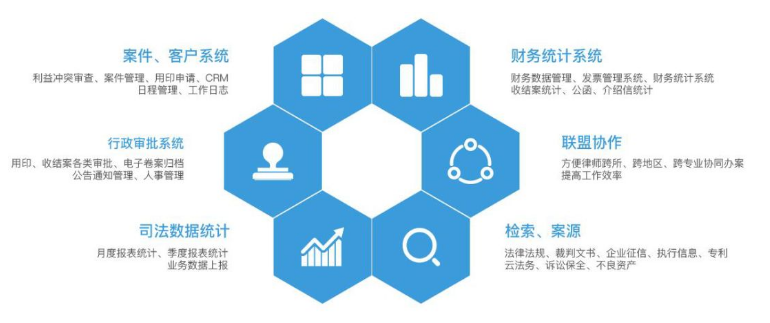 “e律師”智慧律所應用系統(以下簡稱“e律師”)是由浙江律聯信息科技有限公司歷時六年研發,專注于為律所打造的云辦公平臺,集合人(管理/協作)、財(財務)、務(業務)三位于一體,幫助律所實現業務聯動、數據分析,為律所經營管理提供全面的、一體化的IT支撐,同時實現律師個人和團隊的高效協作。